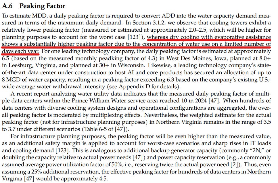 Data centers exhibit substantially higher daily peaking factors - spikes in water flow - than other local facilities. And those spikes are particularly high for dry cooled facilities: